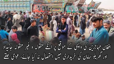 افغان مہاجرین کی واپسی کے موقع پر انکے منقولہ و غیر منقولہ جائیداد اور گھریلو سامان کی خریداری میں استحصال نہ کیا جائے، عوامی حلقے