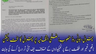 چترال–بونی روڈ منصوبہ: ناقص تعمیر اور غفلت پر ضلعی انتظامیہ کا سخت ایکشن، ایف آئی آر درج کرنے کی ہدایت