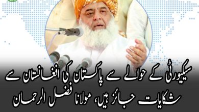 سیکیورٹی کے حوالے سے پاکستان کی افغانستان سے شکایات جائز ہیں، مولانا فضل الرحمان