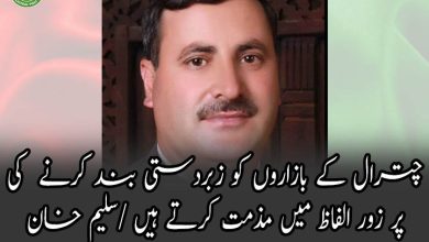 چترال کے بازاروں کو زبردستی بند کرنے کی مذمت کرتے ہیں،پی ٹی آئی کا شو ناکام ہوگیا/سلیم خان
