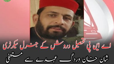 عوامی نیشنل پارٹی تحصیل دروش کے جنرل سیکرٹری شان خان وردگ عہدے سے مستعفی
