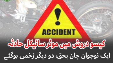 کیسو دروش میں موٹر سائیکل آپس میں ٹکرانے سے ایک نوجوان جان بحق، دو دیگر زخمی ہو گئے