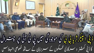 ڈپٹی اسپیکر ثریا بی بی کی موجودگی میں پی ٹی آئی اپر چترال کا ڈپٹی کمشنر و سرکاری محکموں کے سربراہان کیساتھ اجلاس، ترقیاتی منصوبے زیر غور آئے