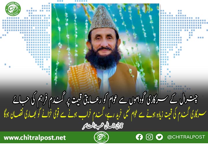 چترال کےعوام کو سرکاری گوداموں میں موجود گندم رعایتی قیمت میں دیجائے/قاری جمال عبدالناصر