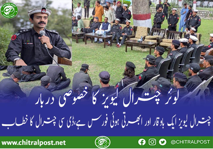 چترال(چترال پوسٹ) گورنر کاٹیج چترال میں لوئر چترال لیویز کا ایک خصوصی دربار منعقد ہوا، جس میں کمانڈنٹ چترال لیویز و ڈپٹی کمشنر لوئر چترال ہاشم عظیم نے جوانوں سے خطاب کیا اور ان کے مسائل سنے۔