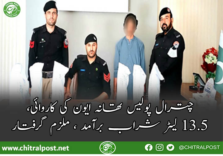 چترال(چترال پوسٹ) چترال پولیس تھانہ ایون نے ایک کاروائی کے دوران 13.5 لیٹر دیسی شراب بر آمد کرکے ملزم کو گرفتار کر لیا۔