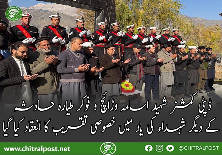چترال( چ،پ) شہید ڈپٹی کمشنر اسامہ احمد وڑائچ اور پی آئی اے طیارہ حادثہ 2016 کے شہداء کی برسی کے سلسلے میں اسامہ وڑائچ پارک میں خصوصی تقریب کا انعقاد کیا گیا۔