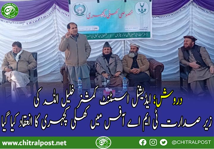 دروش(چ، پ) گڈ گورننس روڈ میپ کے تحت ڈسٹرکٹ سروس ڈیلیوری کو مؤثر بنانے اور عوامی مسائل کے بروقت حل کے لیے ایڈیشنل اسسٹنٹ کمشنر دروش خلیل اللہ کی زیرِ صدارت ٹی ایم اے آفس دروش میں صفائی سے متعلق مسائل پر خصوصی کھلی کچہری کا انعقاد کیا گیا۔