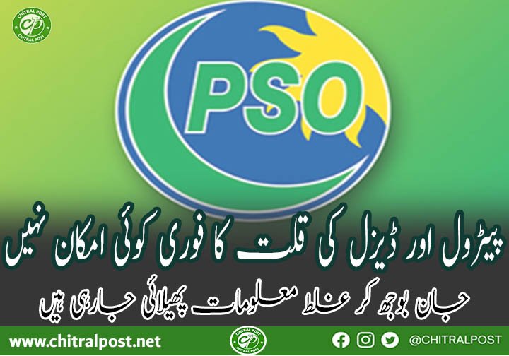 اسلام آباد (و،ڈ) پاکستان اسٹیٹ آئل (پی ایس او) نے کہا ہے کہ ملک میں پیٹرول اور ڈیزل کی قلت سے متعلق جان بوجھ کر غلط معلومات پھیلائی جا رہی ہیں حالانکہ 20 دن سے زائد کا ذخیرہ موجود ہے۔