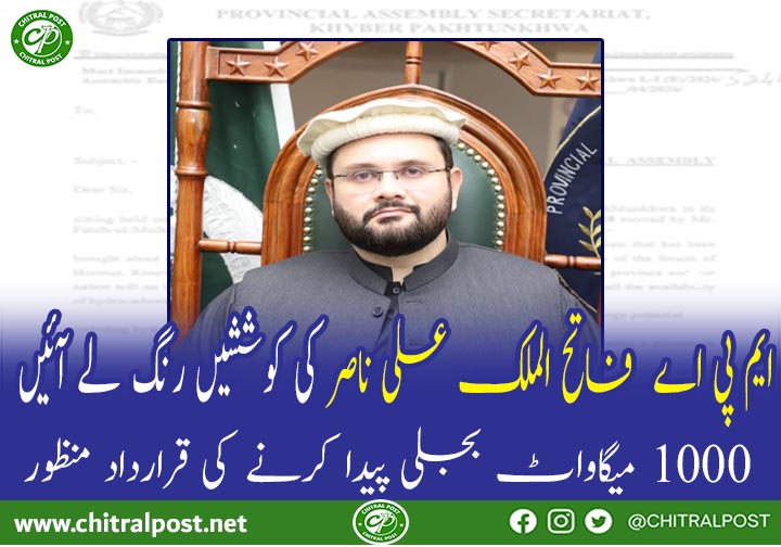 چترال (بشیرحسین آزاد) رکن صوبائی اسمبلی فاتح الملک علی ناصر کی جانب سے پیش کی گئی اہم ترین قرارداد خیبر پختونخوا اسمبلی سیکرٹریٹ نے متفقہ طور پر منظور کرلی ہے۔